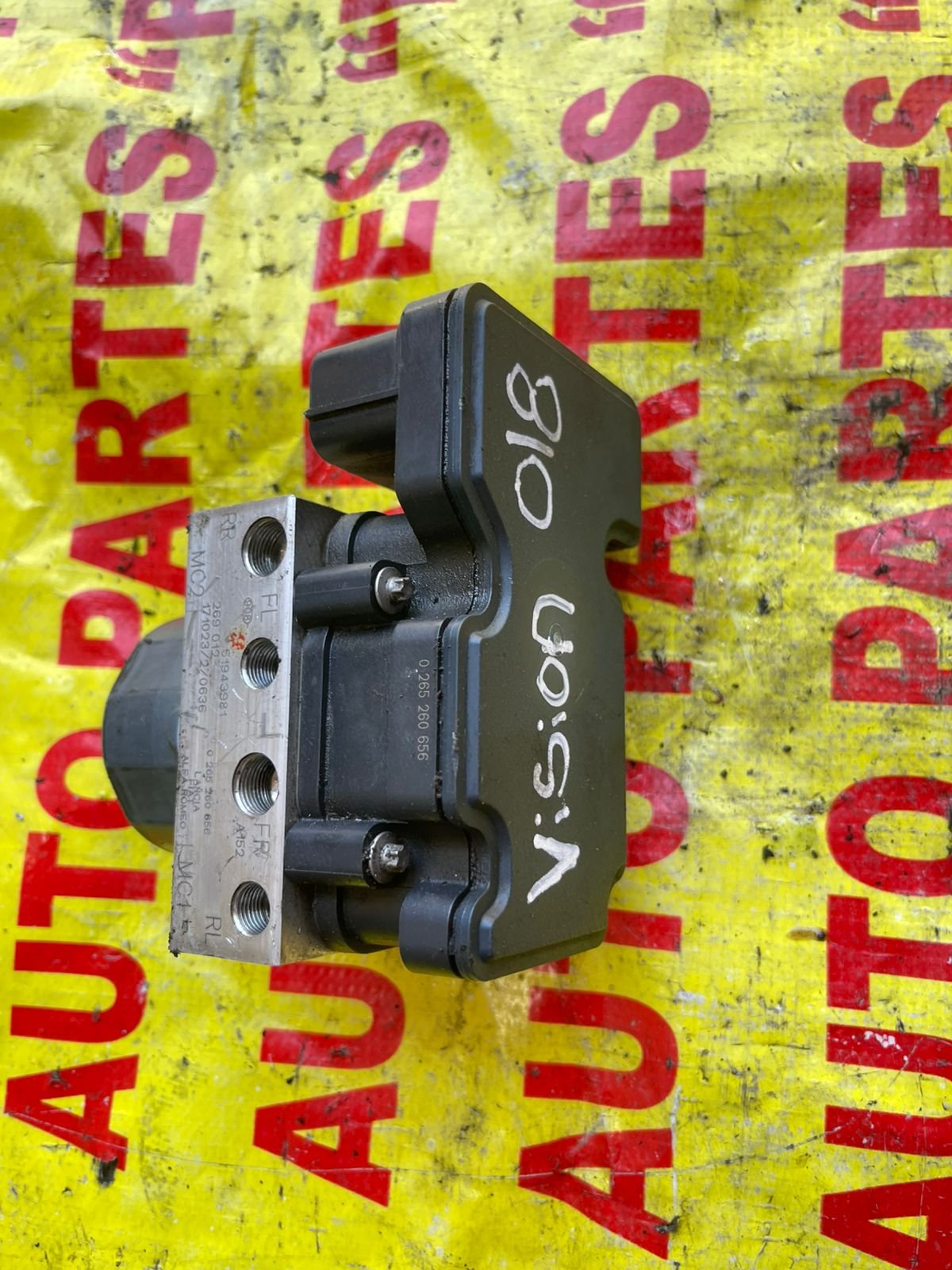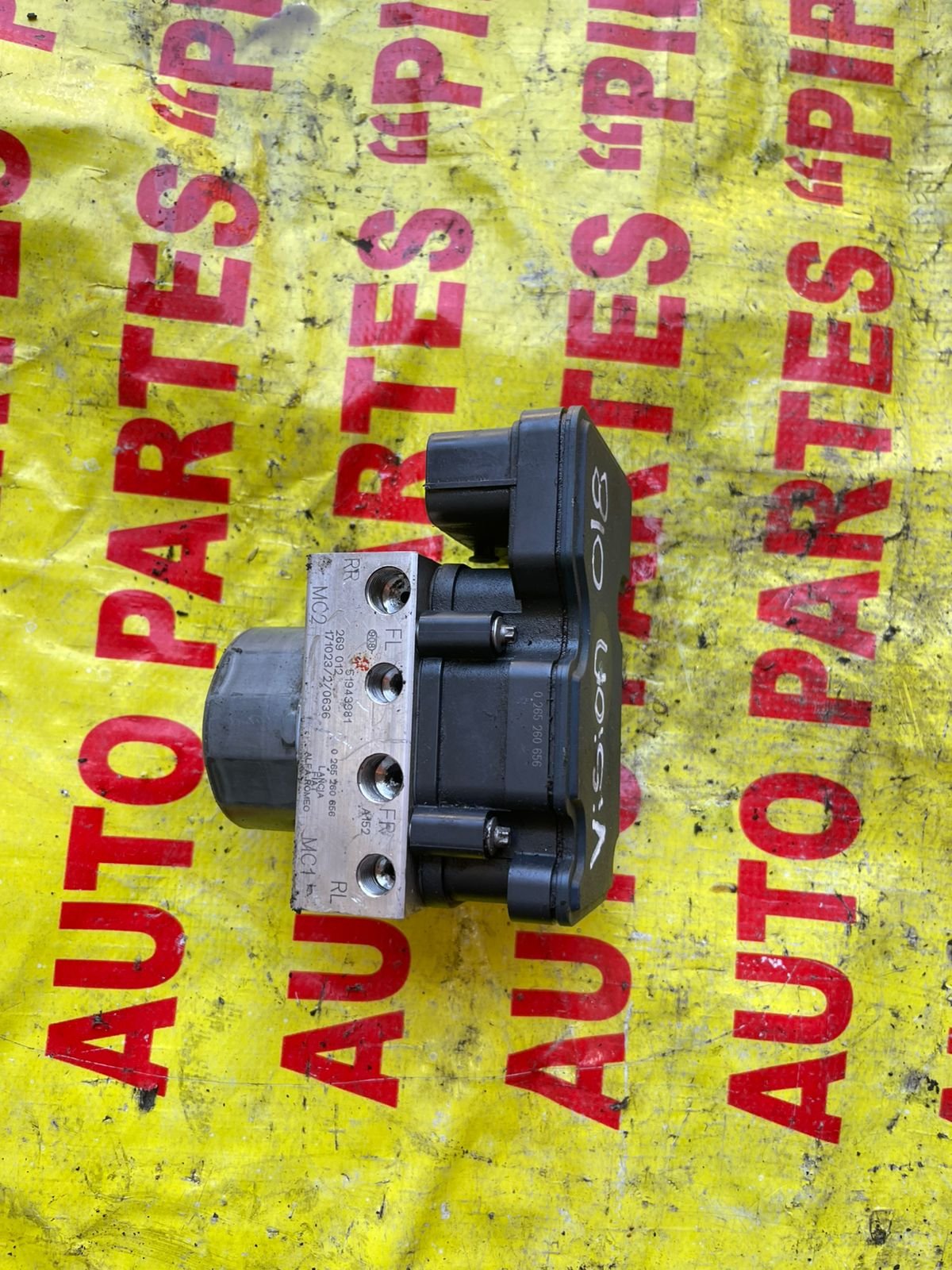 Este componente es el corazón del sistema de frenado antibloqueo. Se encarga de monitorear la velocidad de cada rueda y modular la presión del líquido de frenos de forma independiente miles de veces por segundo. Está compuesto por la unidad de mando electrónica (ECU) y el bloque de válvulas hidráulicas (HCU), diseñado específicamente para la plataforma del Dodge Vision / Fiat Grand Siena.